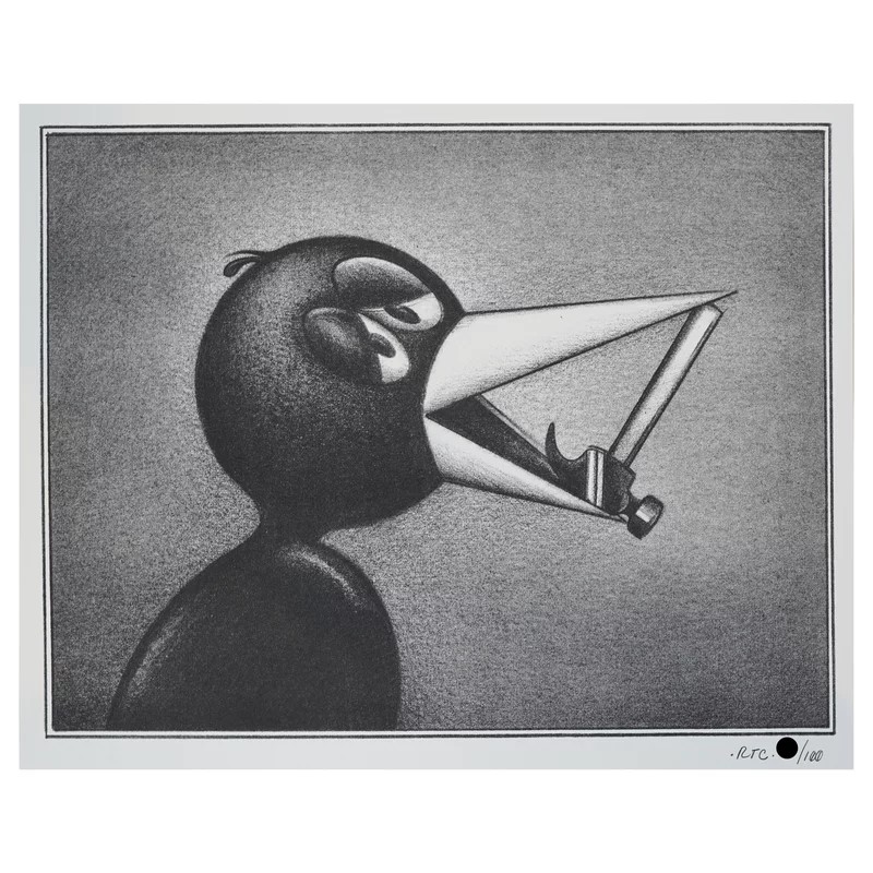 Ryan Travis Christian은 그의 어둡고 재밌는 그림과 흑연 드로잉에서 빈티지 애니메이션과 시카고 이미지스트 의 미학을 재해석하며 , 모두 회색조로 표현합니다. 이 작가는 시카고 교외에서 자란 것이 종종 영감을 줍니다. Christian은 가정의 진부함을 초현실주의, 풍자, 위험의 장소로 재구성합니다. 그는 뉴욕, 로스앤젤레스, 런던, 파리, 베를린에서 전시를 했으며 웹사이트를 통해 번창하는 상품 시장을 운영합니다. Christian은 알아볼 수 있는 만화 미학과 기이한 이미지, 폭력적인 주제를 결합하여 지친 미국 신화를 풀어냅니다.